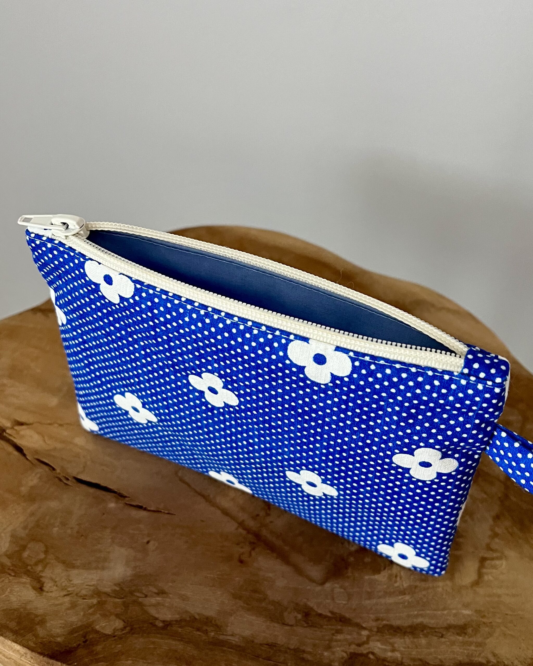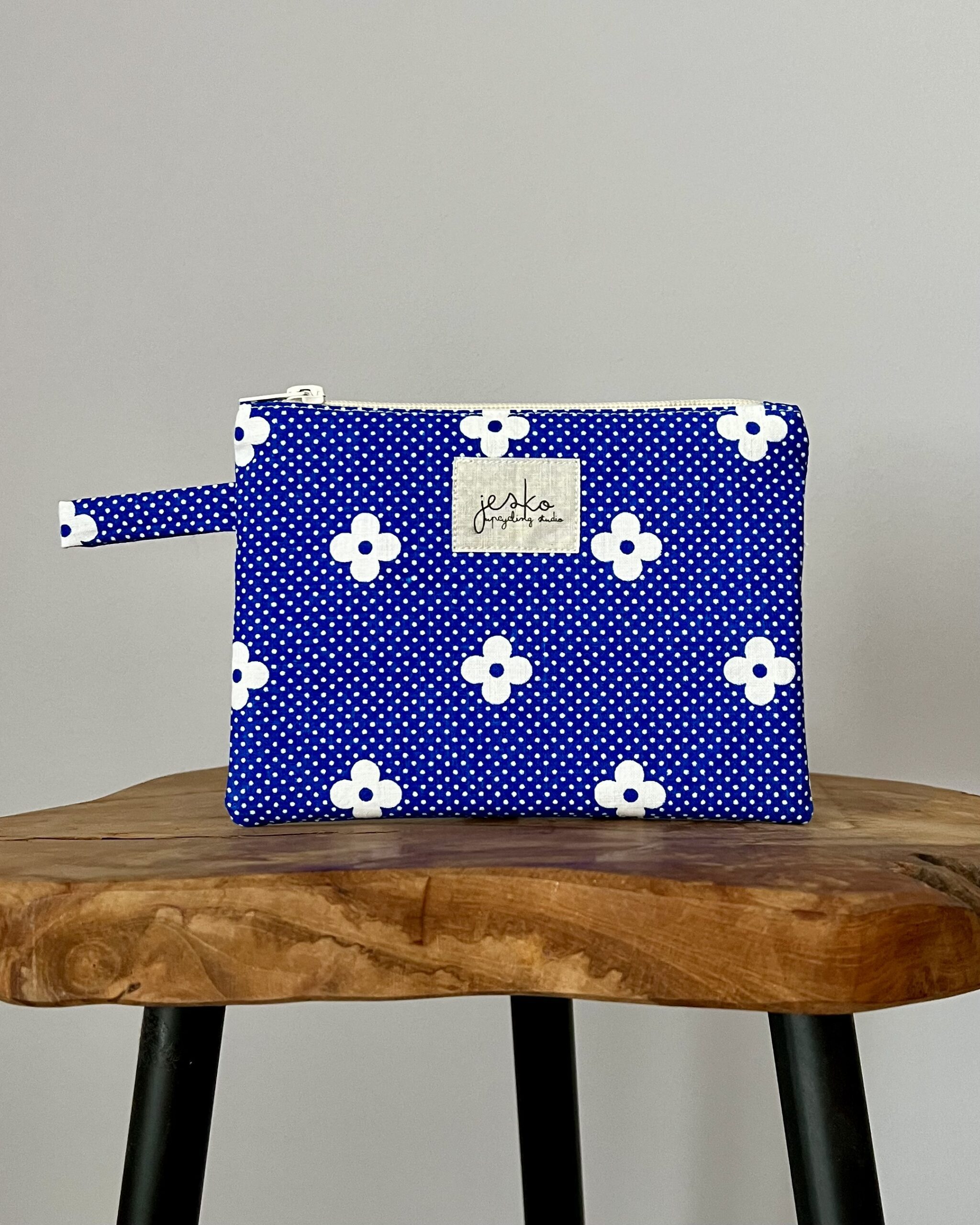Uszyta ręcznie w duchu upcyclingu, z materiałów z drugiego obiegu, w małym studio w Poznaniu. Mała kosmetyczka, idealna na drobiazgi, zmieści się do każdej torebki. Ma uchwyt, można ją powiesić lub zaczepić na karabińczyk. Jeden, unikatowy egzemplarz.