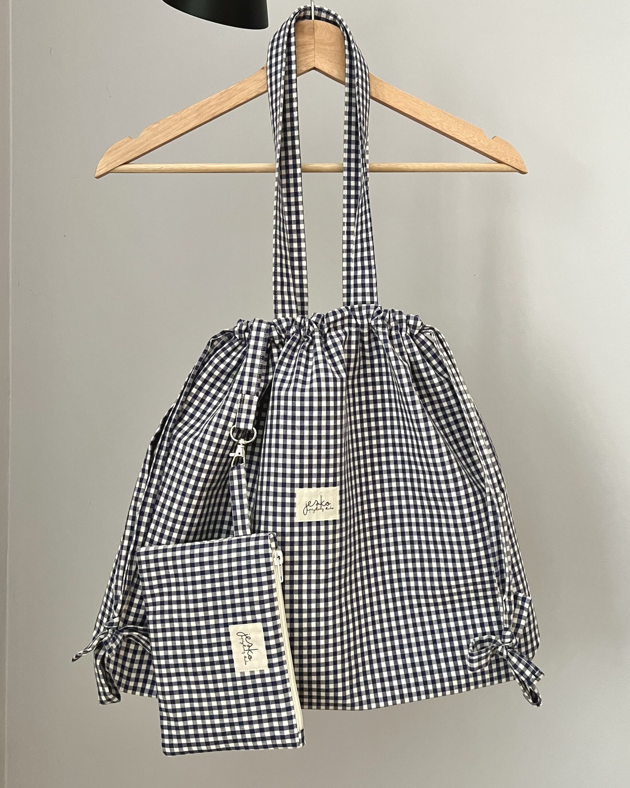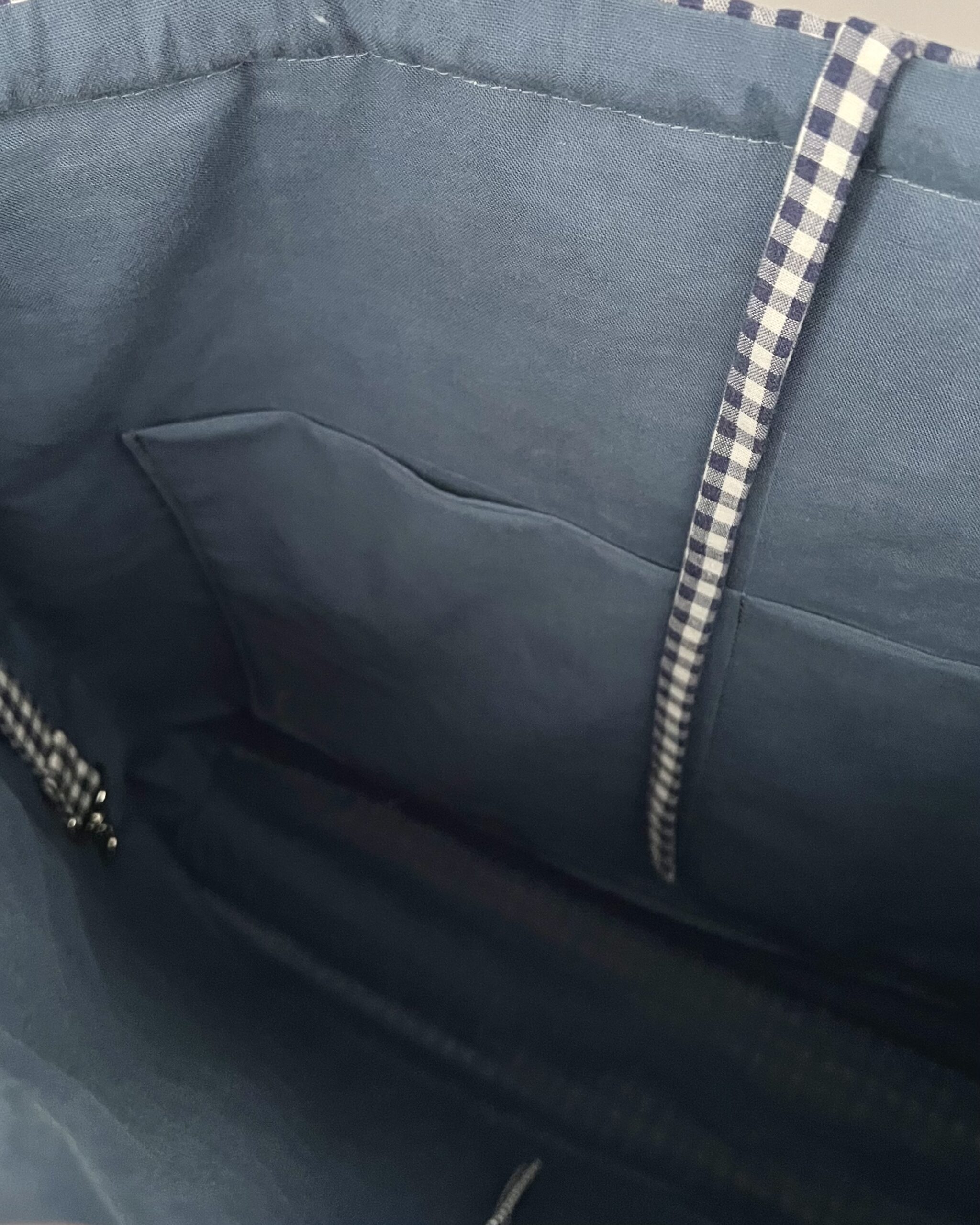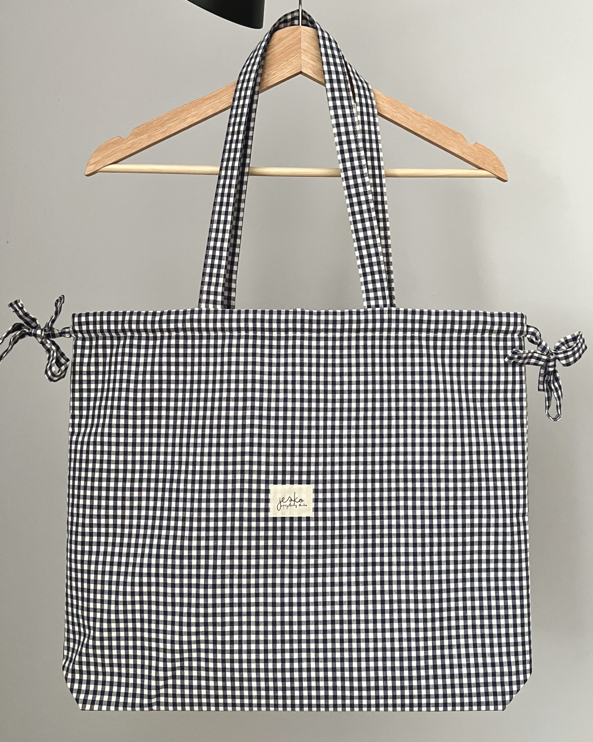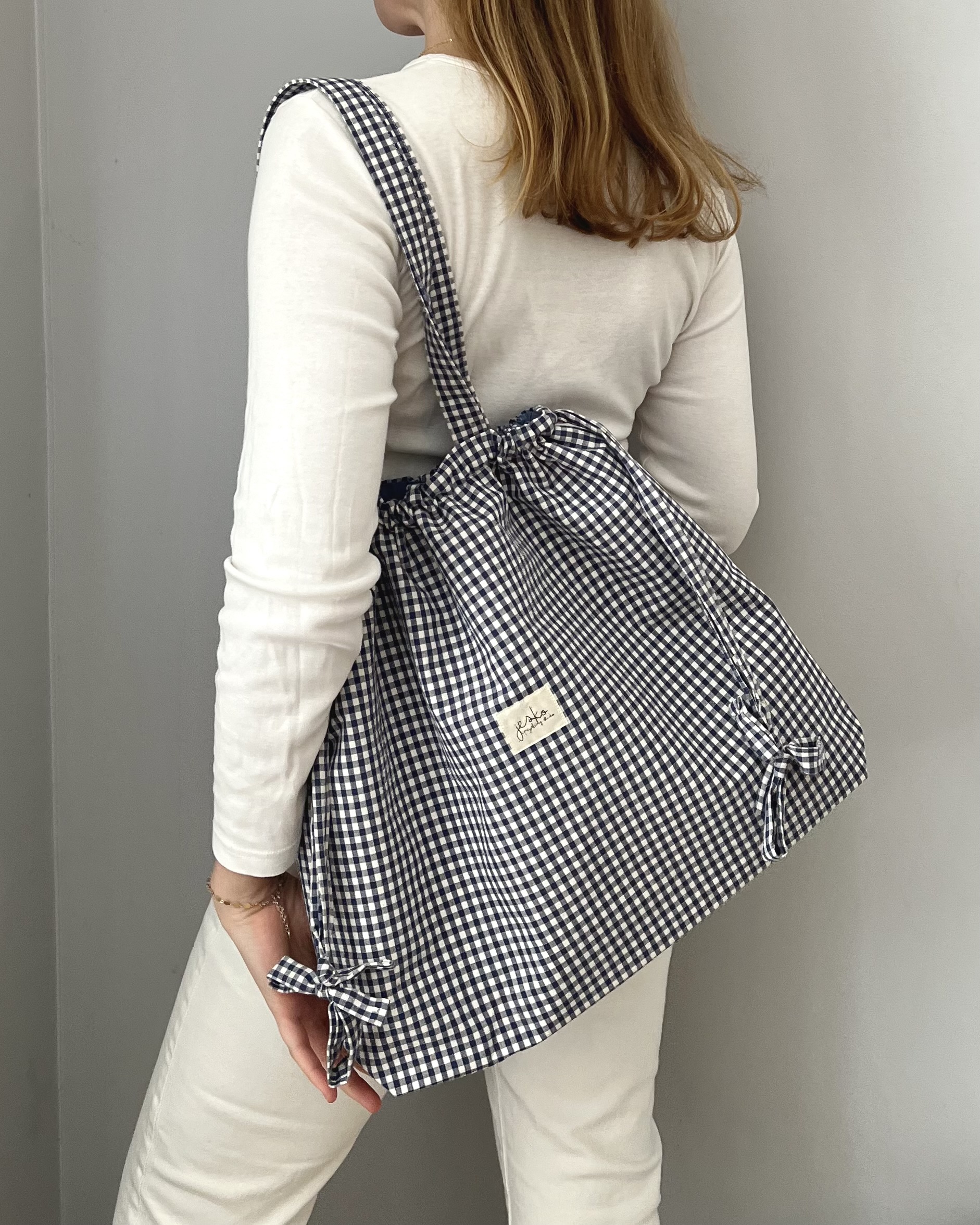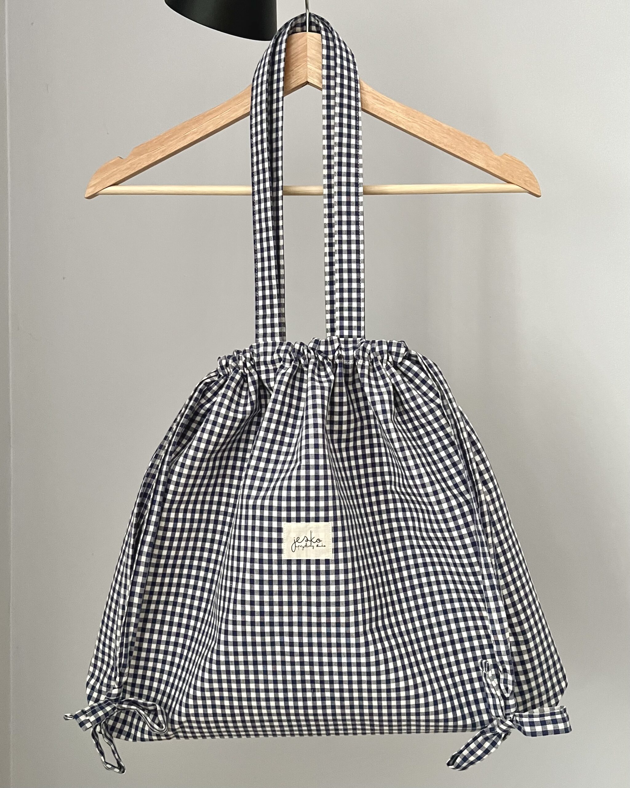 Uszyta ręcznie w duchu upcyclingu, z materiałów z drugiego obiegu, w małym studio w Poznaniu. Duża, pojemna torba, idealna do pracy, na uczelnie, na zakupy. Gdziekolwiek potrzebujesz. Zwężana, dzięki czemu masz pewność, że nic ci z niej nie wypadnie ani nikt z niej niczego nie wyciągnie. W środku ma dodatkowe wiązanie, kieszonkę z dwoma przegródkami i karabińczyk, na który możesz zaczepić klucze, kosmetyczkę, słuchawki lub inne przydatne rzeczy.