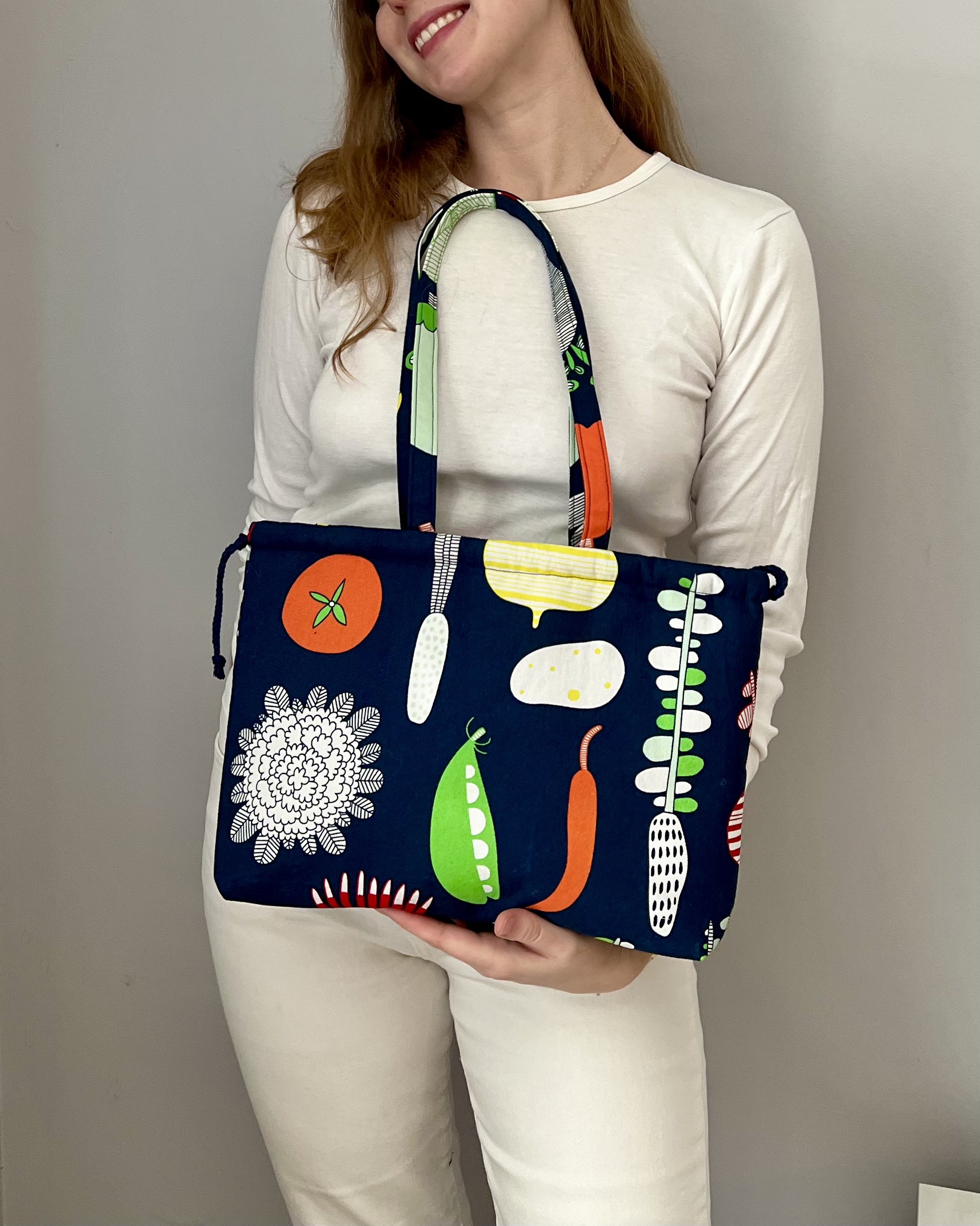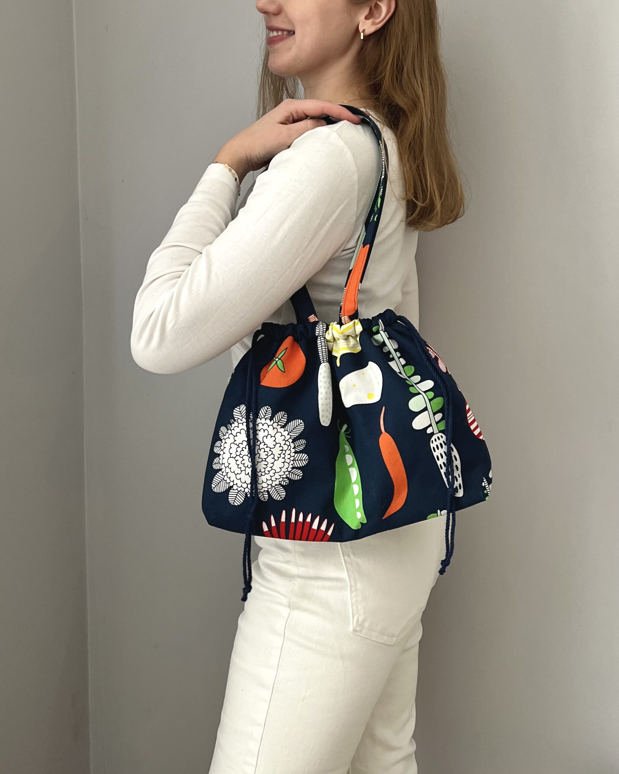 Uszyta ręcznie w duchu upcyclingu, z materiałów z drugiego obiegu, w małym studio w Poznaniu. Przez wypełnienie piankowe jest jak grubiutka, mięciusia podusia. Zwężana. Vintage krój. W środku kieszonka na zamek. Pomieści sporo, choć nie wygląda. Unikatowy egzemplarz.